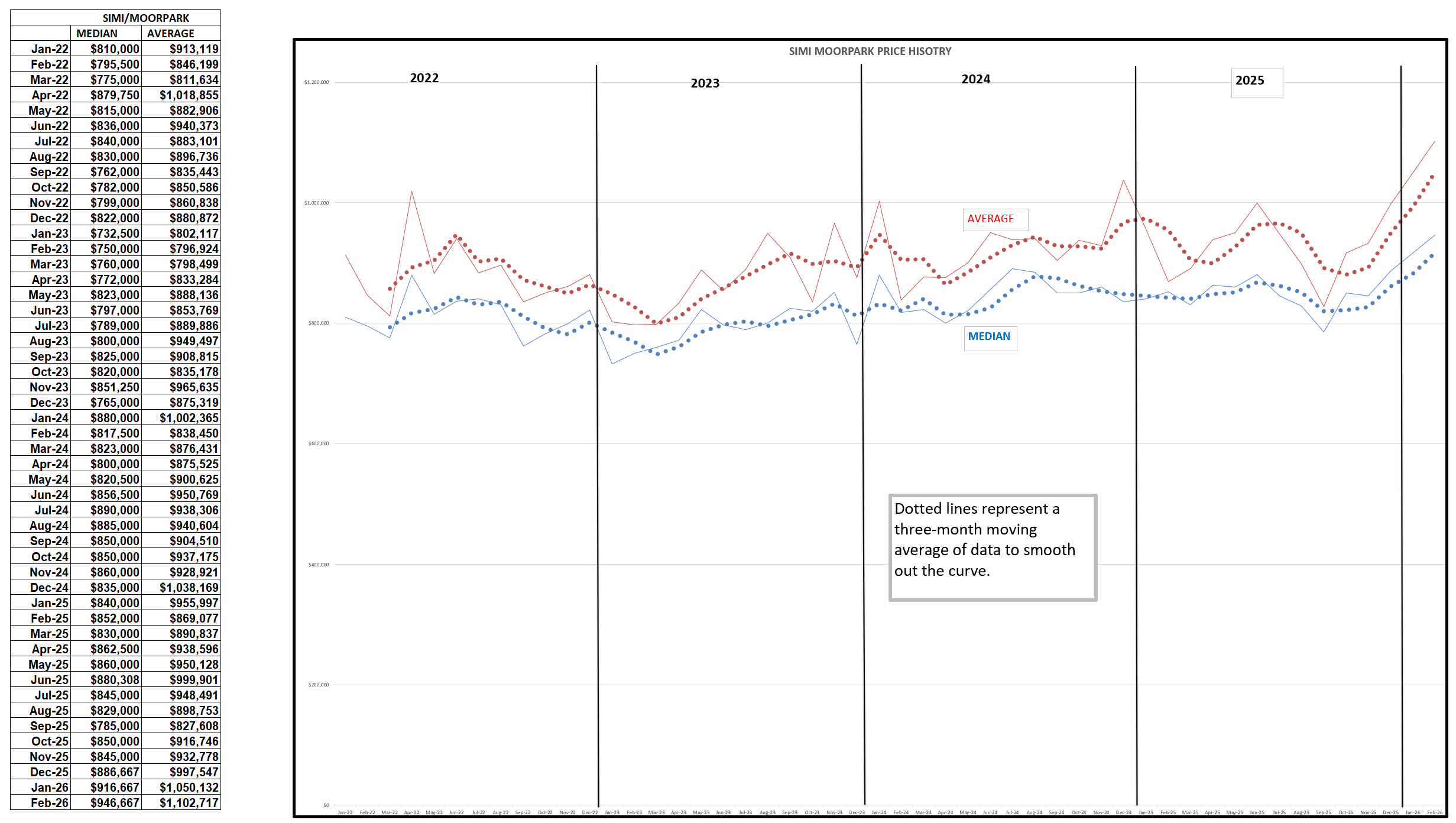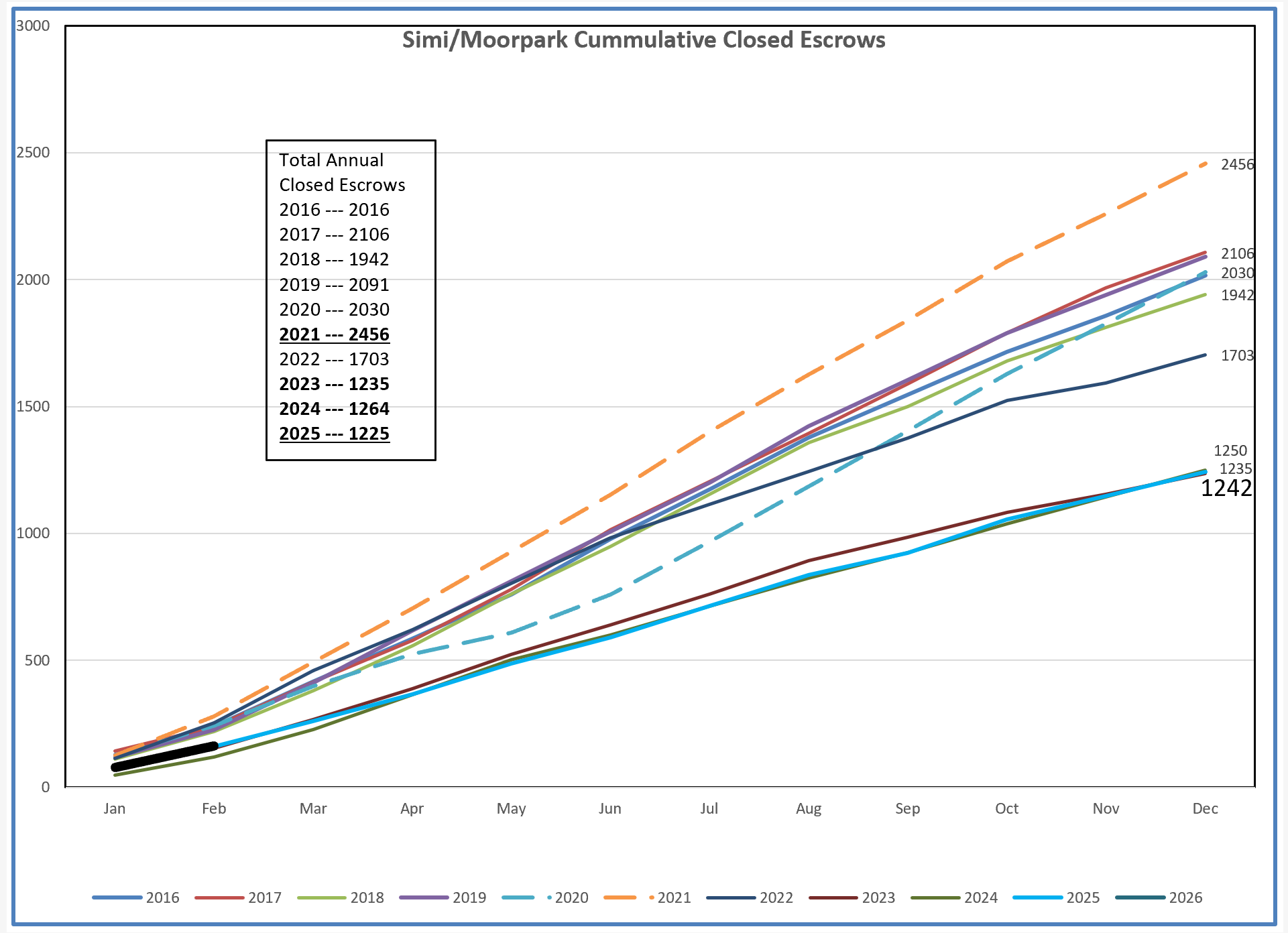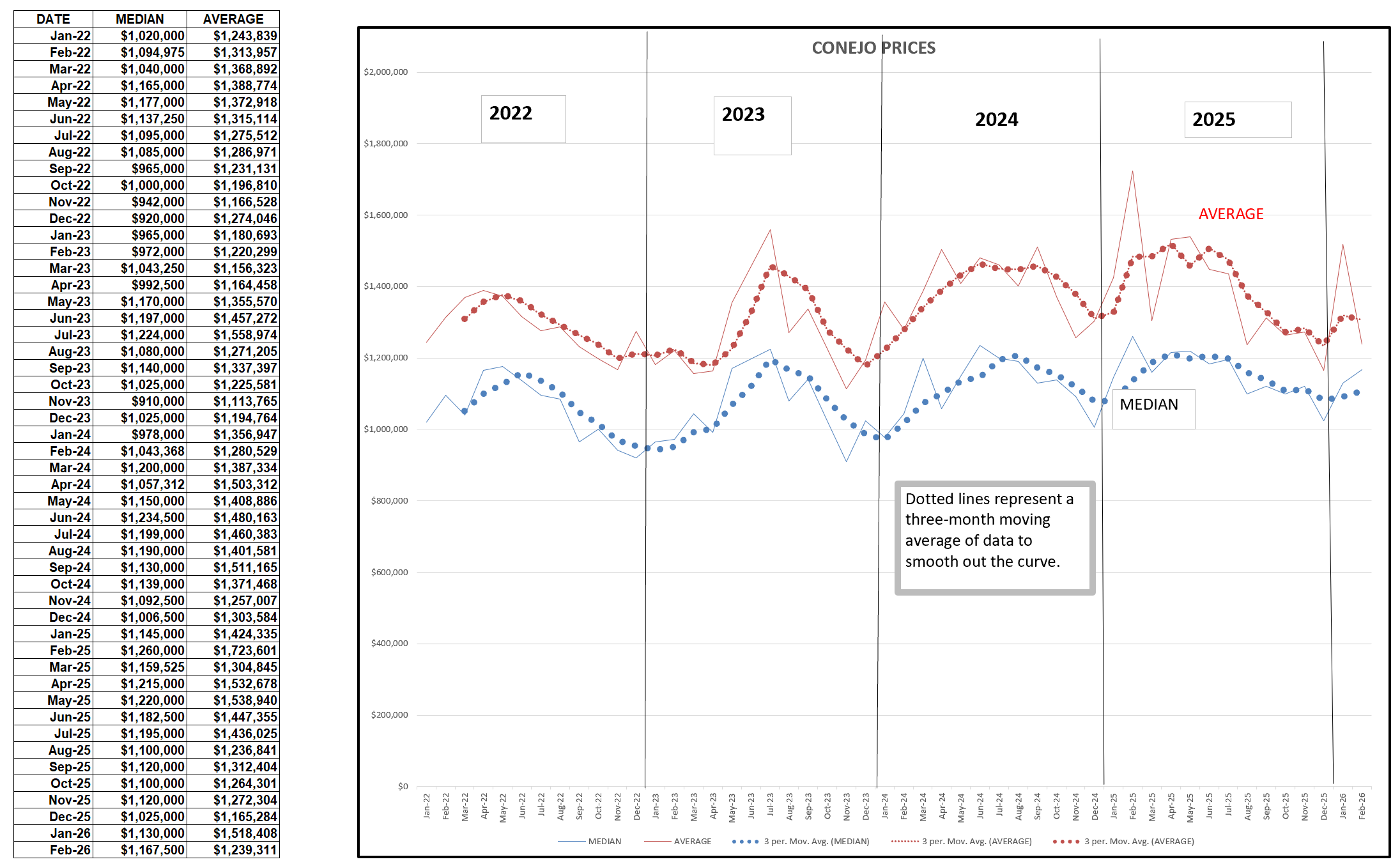 For Conejo, sales are starting out comparable to the past three years. We hope this foretells a strong market, but it is too early to tell. 2023 , 2024 , and 2025 compared closely to one another. Next month we will get a better read on how 2026 compares. A sneak peak into the future tells me we are still following the levels of those three years.